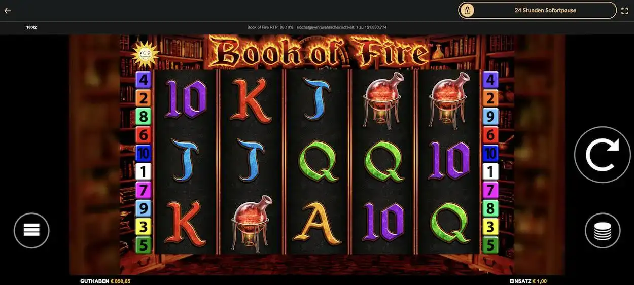 Spielen kannst du den Slot im 5x3-Format mit zehn wählbaren Gewinnlinien. Der Book of Fire Spielautomat ist von hoher Volatilität und bietet dir eine Auszahlungsquote von 94,41 %.