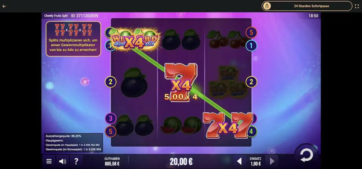 Bekommst du geteilte Symbole auf eine Gewinnlinie, wird die Auszahlung mit der Anzahl der gesplitteten Symbole multipliziert. Das kann für ordentliche Gewinne sorgen.