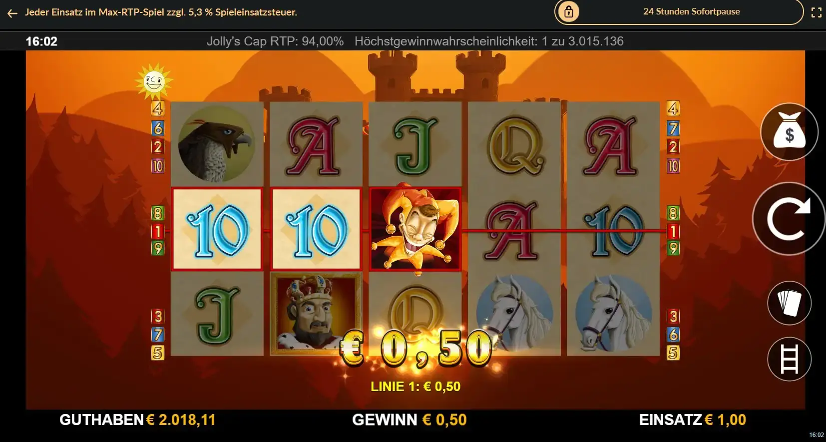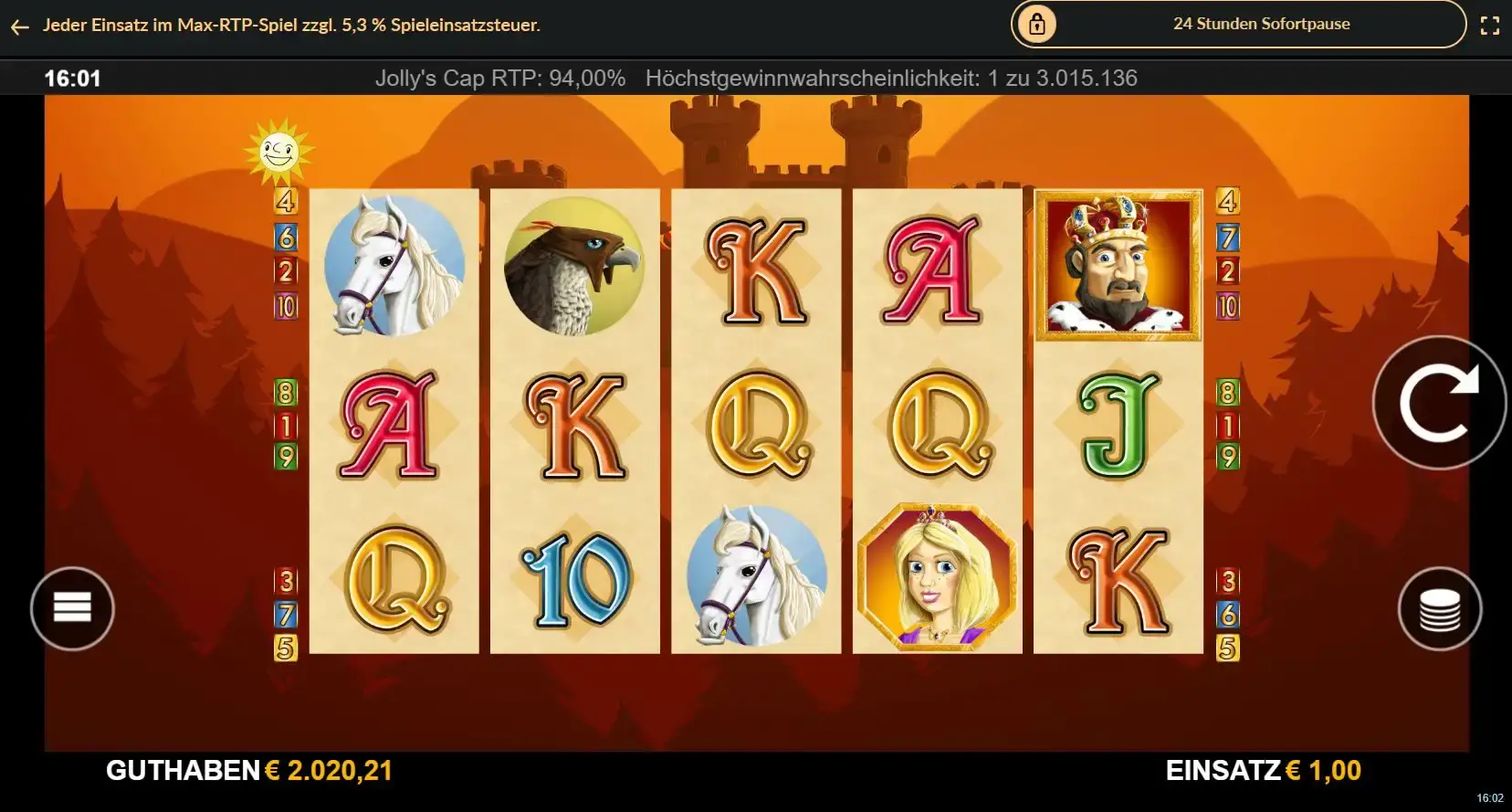 Jollys Cap ist ein Online Spielautomat von Merkur, der auf humoristische Art und Weise die Zeit der Ritter thematisiert. Du spielst auf fünf Walzen mit zehn Gewinnlinien und musst möglichst viele identische Symbole der gleichen Art auf einer Gewinnlinie kombinieren.