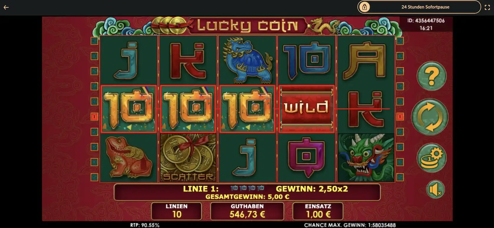 Lucky Coin wurde 2015 von Amatic veröffentlicht und ist als Online Slot in Deutschland seit 2021 zugelassen. Der Spielautomat basiert auf fünf Walzen und zehn Gewinnlinien, deren Anzahl nicht verändert werden kann.